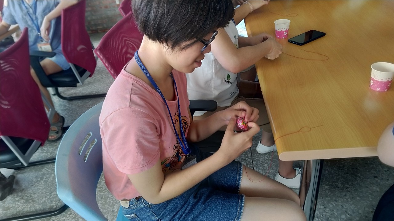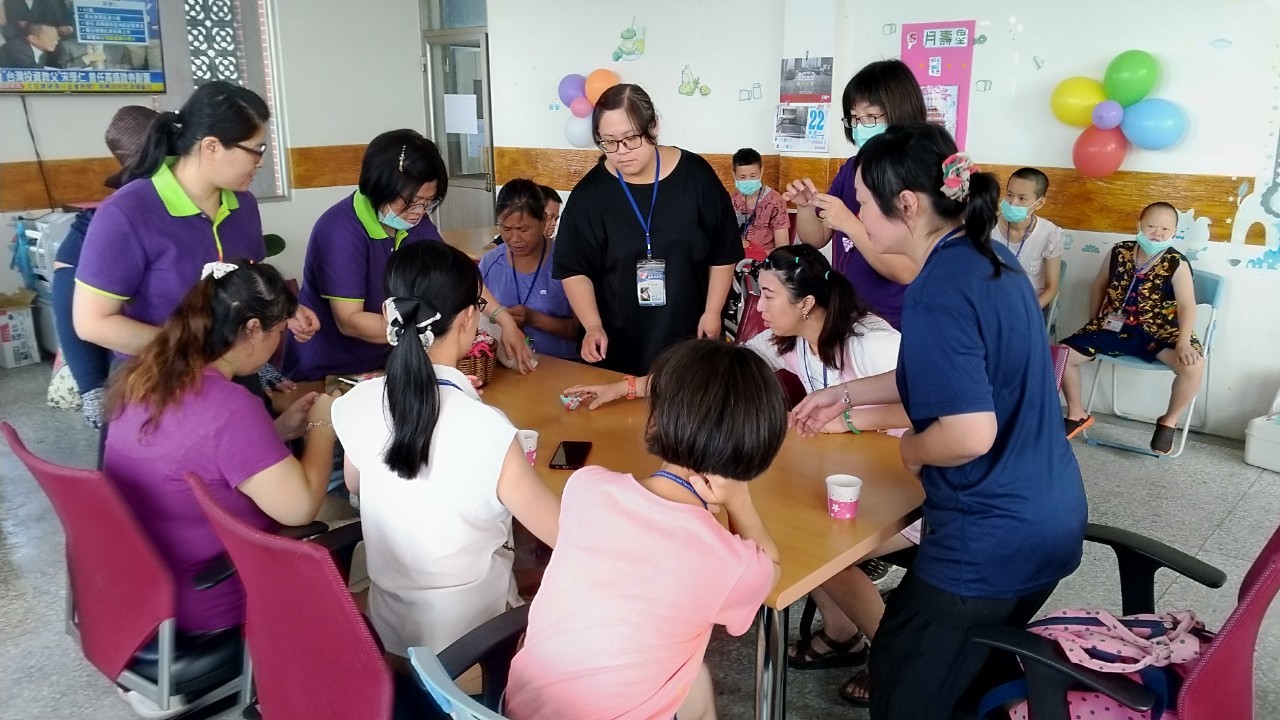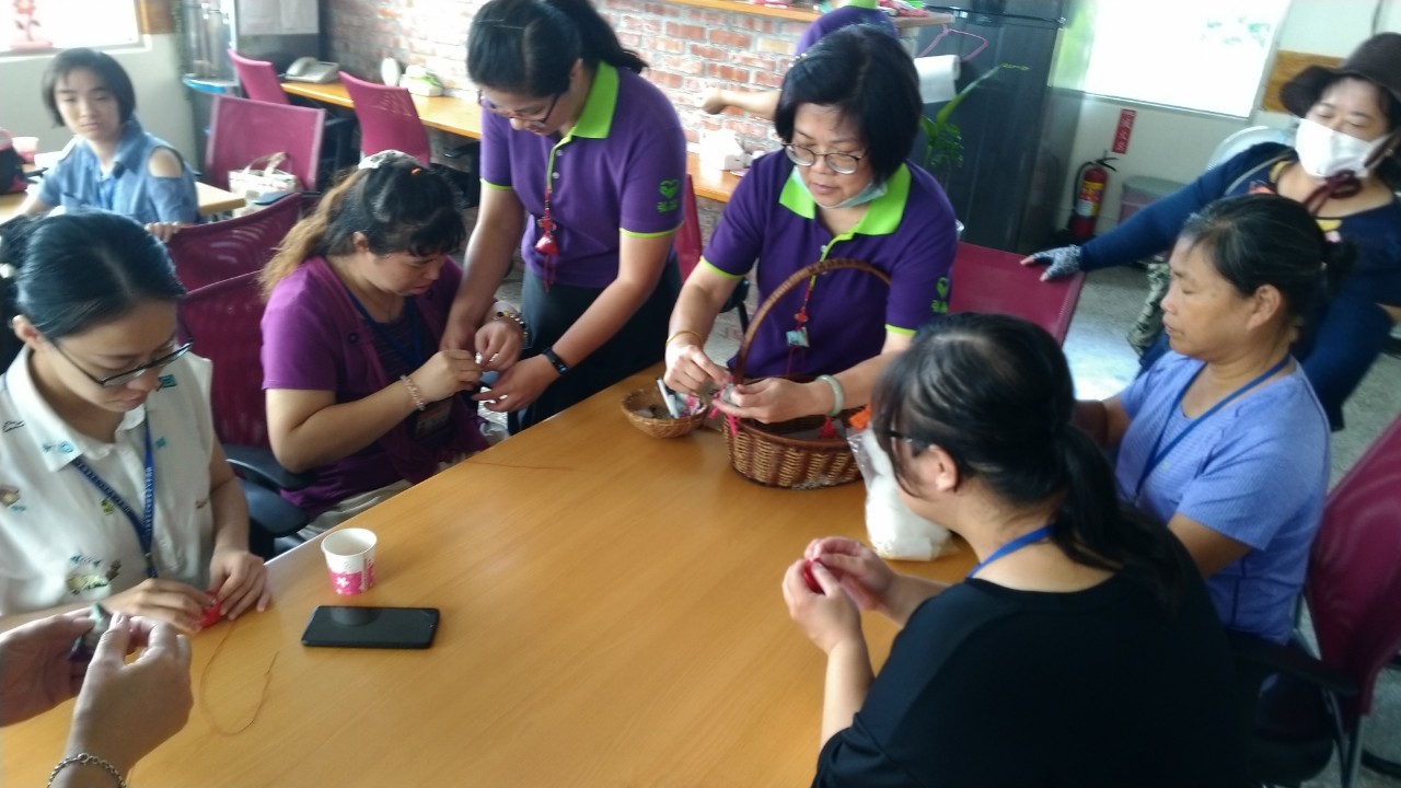 也一同參與端午節活動-香包製作與卡拉OK,在大家專注的縫製下完成驅五毒的香包,好安心!